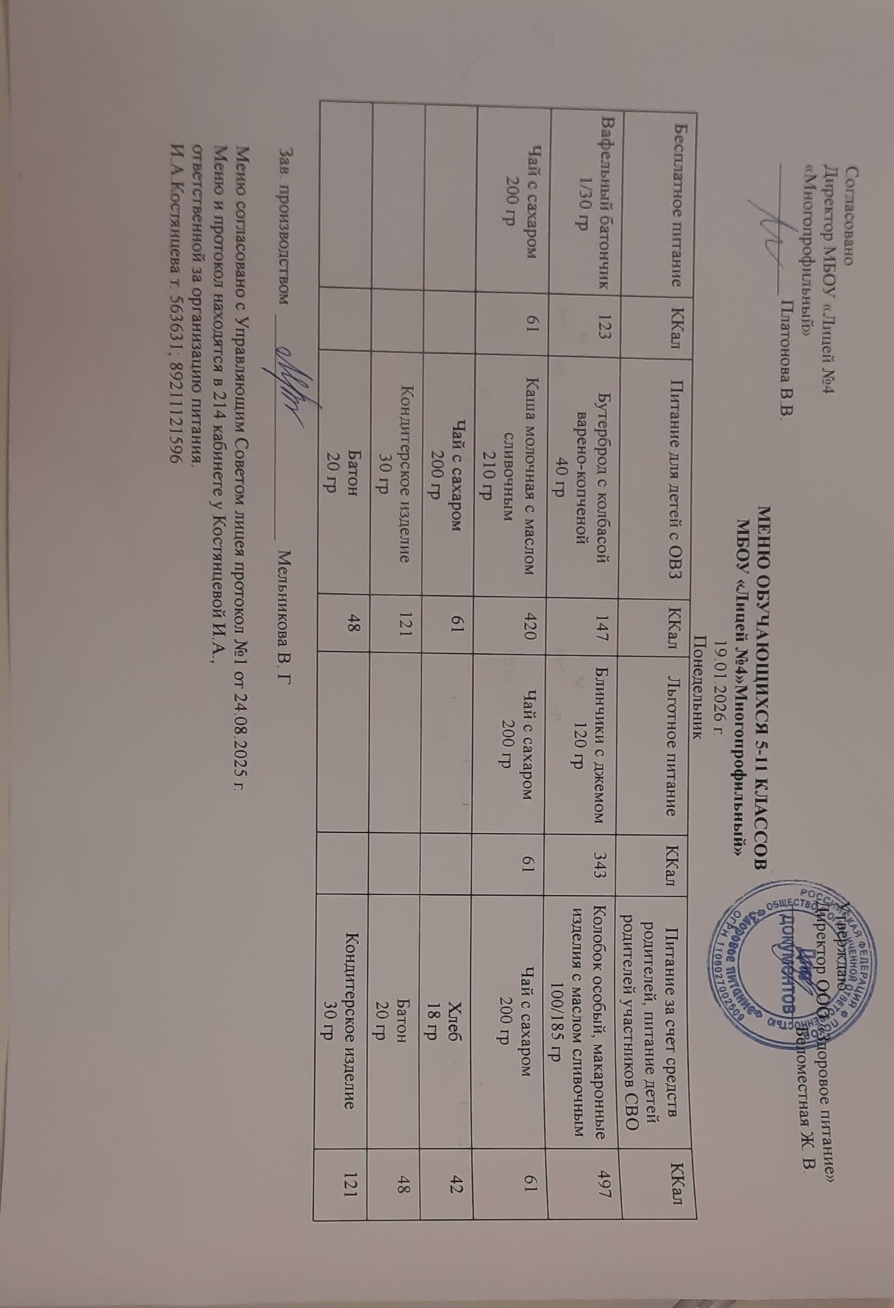 ОРГАНИЗАЦИЯ ПИТАНИЯ В ЛИЦЕЕ В 2025-2026 УЧЕБНОМ ГОДУ