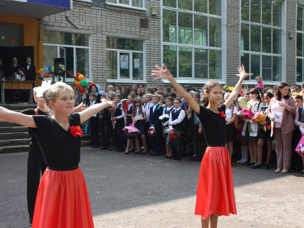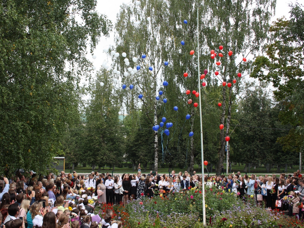Выпускные классы поздравили первоклассников и запустили в небо разноцветные шары.