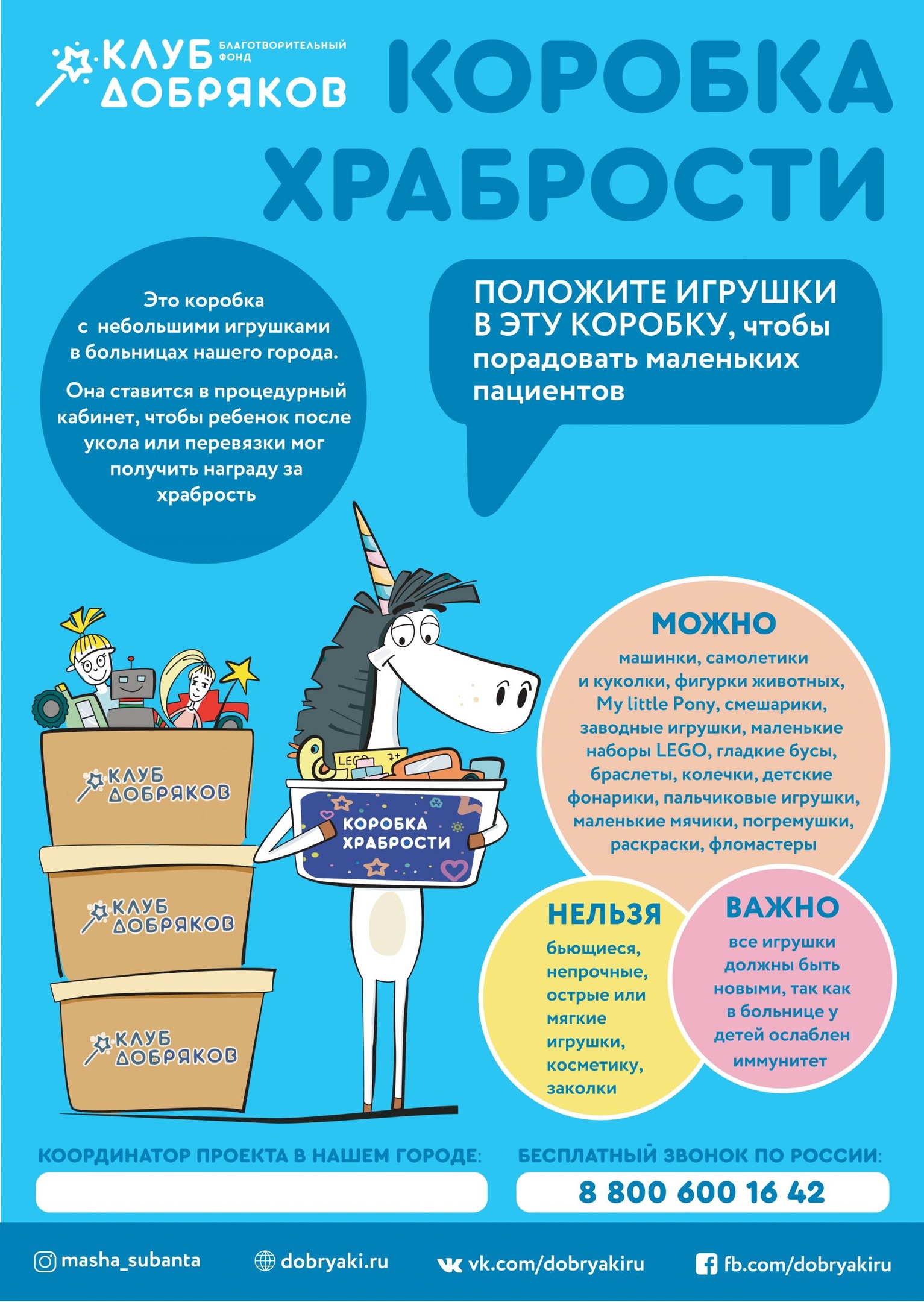 «Коробка храбрости» — это коробка с игрушками в процедурных кабинетах больницы.